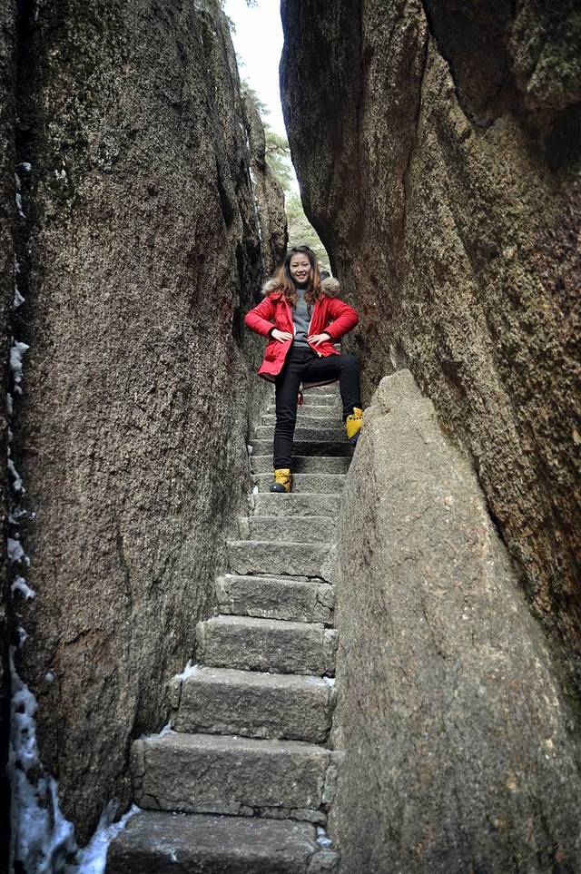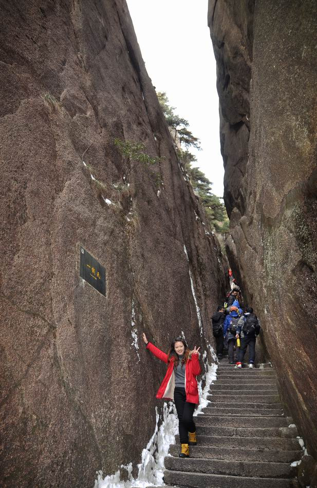 必须来和合影,话说这一线天还真的不宽,大冬天的,我穿的厚厚的刚好可以走过,要是个大胖子这样的大冬天走估计还得侧着身子才能通过了吧~~~要卡住了才好玩呢~~~