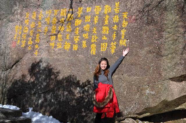 石头上的天都峰赋,只可惜山上都是冰冻和积雪,天都峰是被封掉的!!