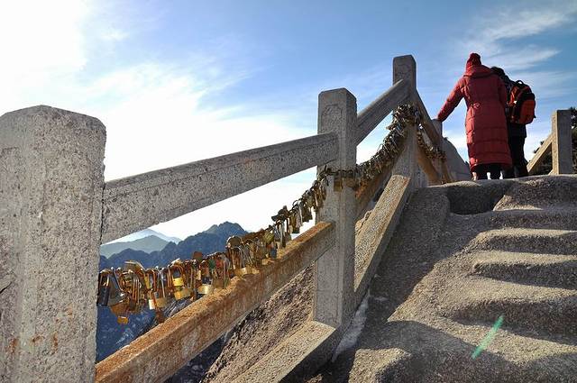 看到人家背那么多东西突然觉得自己好轻松啊~~看到对面一条细细的道没?那就是通往天都峰的,不过已经封掉了~~~