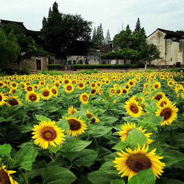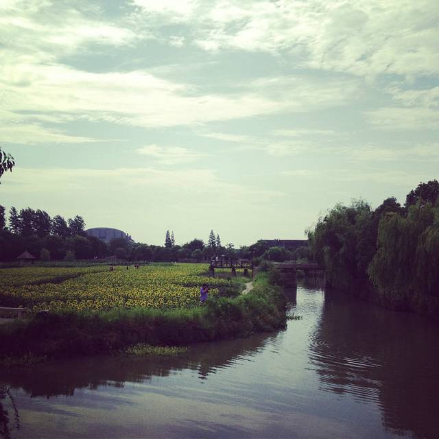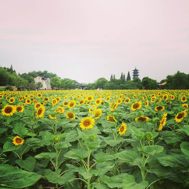 背街有一片向日葵田 来的时候坐摆渡车就看到