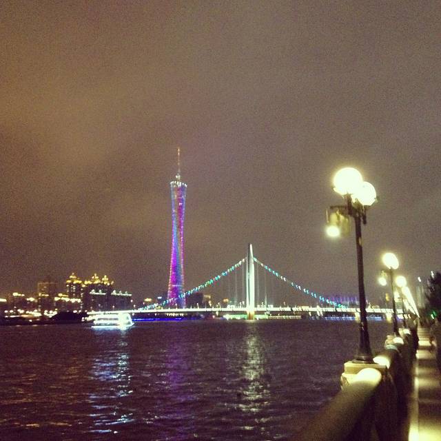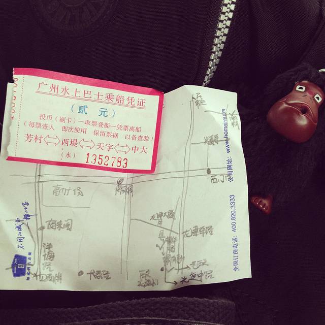 行:打车不便宜,不过居然没有燃油附加;而且打车比北京还困难。公交一律2元,车上一直人不多,倒是出行的很好选择。有一路131,是环珠江的线路,非常赞的样子,我俩没坐。白天轮渡很方便,也是1-2元过江。剩下的可以靠腿儿了。
