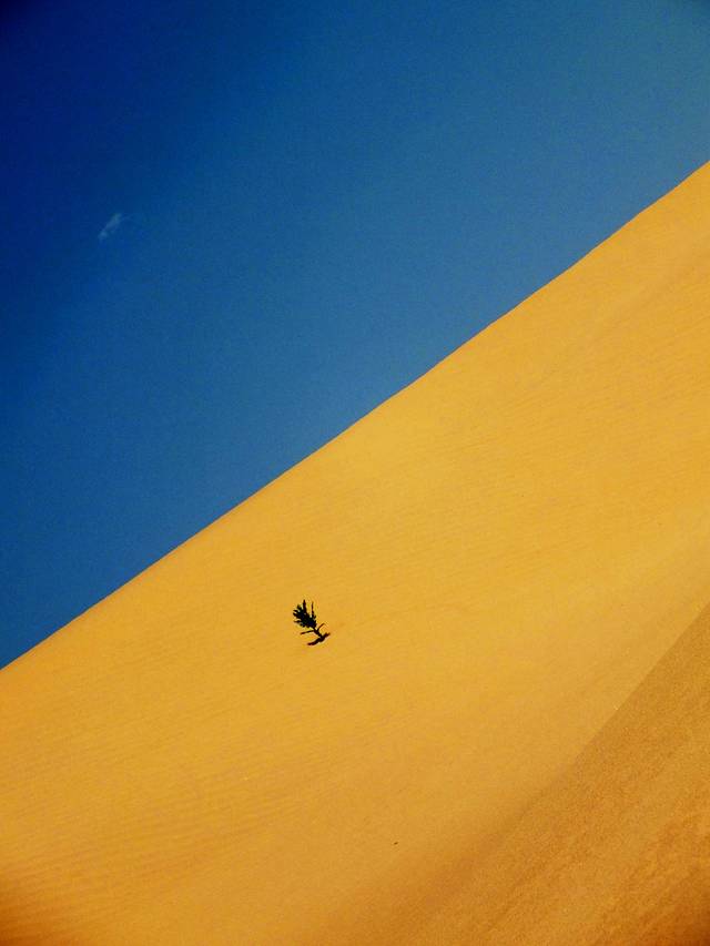 一直以为沙漠里是没有树木的 ,没想到走了一天,一直都看不到一望无垠的一点树木都没有的沙漠。有一点小小的失望吧。