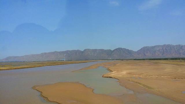 本来还在车上睡觉呢,只听杜杜在那边一个劲的叫我,还以为到地方了呢,原来是路过黄河啦。只听车里卡卡的照相声。这里没有滚滚的黄河,却像一支温和的溪水。
