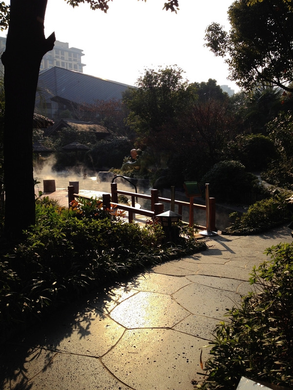 拿出大申网给的体验票,换手牌进场。进入室外露天温泉区域,龙池和牛奶池。为了完成作业,将手机带了进去,买了一个多功能防水袋,不时取出来偷偷的拍几张。好在那天人不多,所以没被打。。。