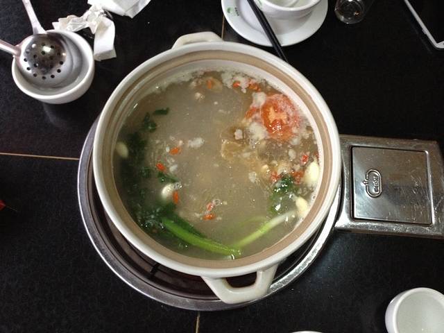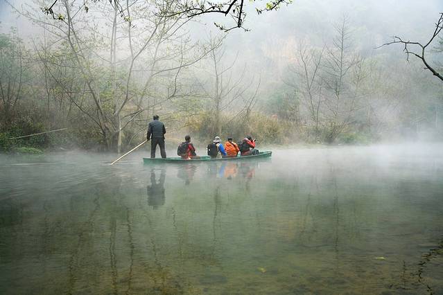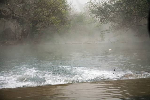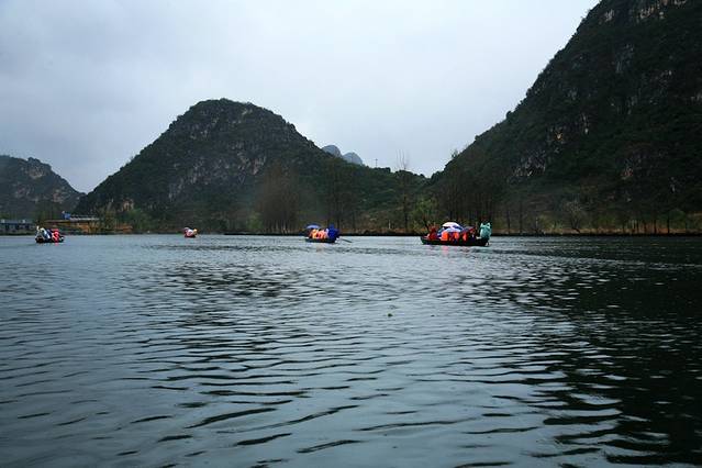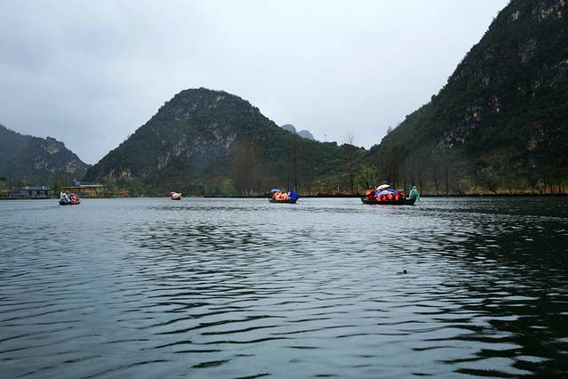 6个人一条小船,向湖中进发。雨几乎没小过,于是大家也就有了一次在普者黑的湿身记忆了。坐着敞棚的铁船,劣质的雨衣不一会就坏了。屁股也都湿透了。湖中的景色还是不错,感觉还很养眼。好不容易到岸,到了吃午饭的农家乐那里,导游已经安排了姜汤和升起了一个火盆。于是喝着姜茶,烤着屁股、大腿、脚爪。总算是从寒冷中缓过劲来了。吃了午饭后,离开普者黑,前往那个广南。入住广南县特安呐会所酒店。这里的住宿条件可以算是高大上了。街上吃的也很爽。傍晚开始,雨停了。不过气温比较低,穿着冲锋衣,走在街上还是感觉很冷。