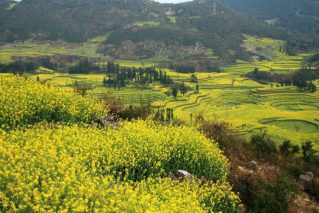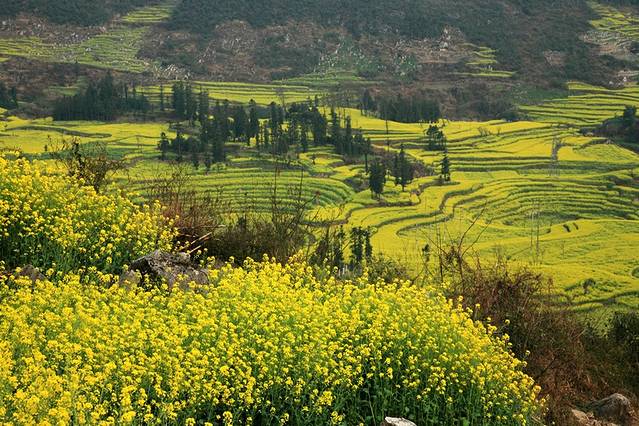 早晨在导游领队的一再催促下,匆匆的吃了早饭,便开始离开坝美村,前往罗平。从村里的船码头登船,在晨雾中离开这个世外桃源。上岸后,又坐两轮马车,然后是再换小船,穿过山洞来到大路上。前后花了差不多一个半小时了。到了10点,才开始正式上路,往罗平进发。从广南往罗平,是沿着滇桂边界的山路走的。有一段路,开到了广西的西林县境内,一直到过了八河口镇,才又重新从广西来到了云南的罗平县。一直的大段的山路,弯弯曲曲,晃晃悠悠,坐的晕晕乎乎。到多依河吃午饭时,已经是下午2点多了。匆匆的吃好饭,汽车又去加了油,到下午3点45分左右才继续出发,紧赶慢赶,总算在下午将近5点的时候,到了牛街螺丝田。这个时候,时间已经是很紧张了,几乎是一天的时间都在路上,感觉也很累啊。在将近一公里的公路上展开,匆匆的拍了一通,下面的田野里,已经没有阳光了。拍到差不多天黑,收工回罗平县城吃饭,晚上入住鑫源宾馆,条件还算不错。房间里还是没有网络,还好自己带了无线3G路由器。这一天就在兜兜转转中过去了。。。