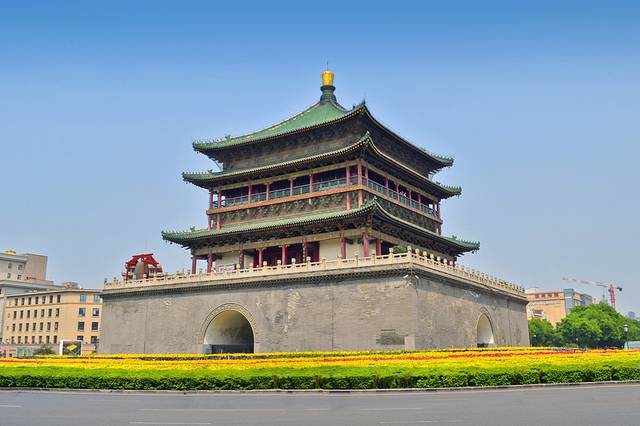 早上起床,那天西安是个很好的天气,洗洗漱漱后就把昨天晚上的事给忘了,打电话给小王来接我,开车没一会就到了钟楼和鼓楼,钟楼和鼓楼在一个地方,两个楼对面相望,小王给我带到钟楼的地下通道,在下面走到钟楼的入口处,买了票当时我学生证还在,打半价17块钱就进去了,上到地面,眼前就是钟楼了,上面一口大钟,可以合影,旁边有编钟表演,很震撼,不过要记得看时间。