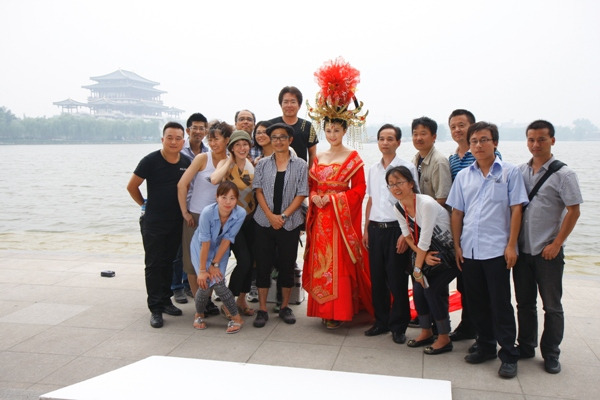 这里园林精致,如梦如幻,行走桥上,回廊无不感概李氏唐王的奢靡享受。不经意转过一片空地,只见三五成群身着唐仕女服装的女子翩然而过,那红艳的纱裙在空中起舞,那回眸一笑中,眼角的胭脂仿佛飞出来一般,很多行人纷纷上前合照,一群小伙子为了抢合照眼睛都红了,由此我得出了一个结论,女孩子无论长得美丑,只要穿上美丽的汉服(汉人服装统称汉服),梳个漂亮的发型,带上珠玉叮叮响的金步摇,都是大美女。这美眉人气也很高。很漂亮