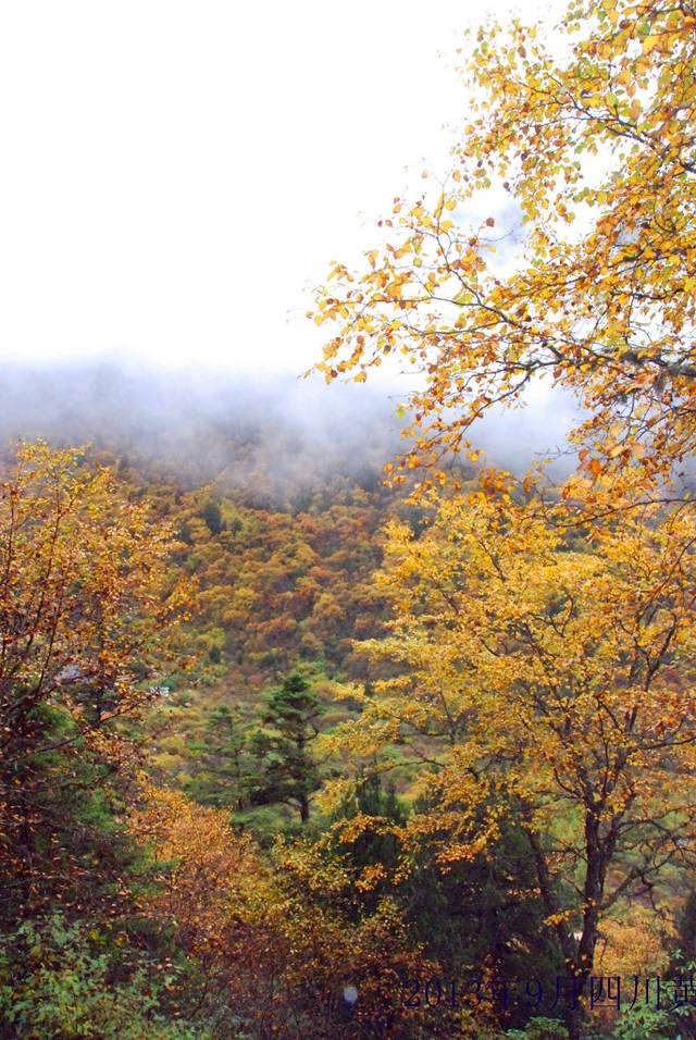 参考了先行人员的建议,太阳不出来美景打折扣,这几天都阴雨天,我们中午才出发过黄龙,车程也要两个小时哟!黄龙的叶子倒变色了,红的黄的绿的一层一层,在九寨没看到的,终于在这圆梦了。传说中的五彩池呀,那种淡淡的蓝,确实美得不真实!美中不足的是,在这边人是怎么避也避不了的,就这么一条道。而且阴雨天,所有美景看上去好像缺了点活力。九寨跟黄龙都没以前漂亮了,看着一个个干涸了的水坑,一堆堆人流,一阵失落,这美景还能维持多久呀?游黄龙最舒服的方式是坐缆车上,徒步下,走再慢,4个小时怎么也走完了。体力好的也可以走个来回,只是来回也那条道,景色也一样,觉得没什么必要费这力气。呵呵……