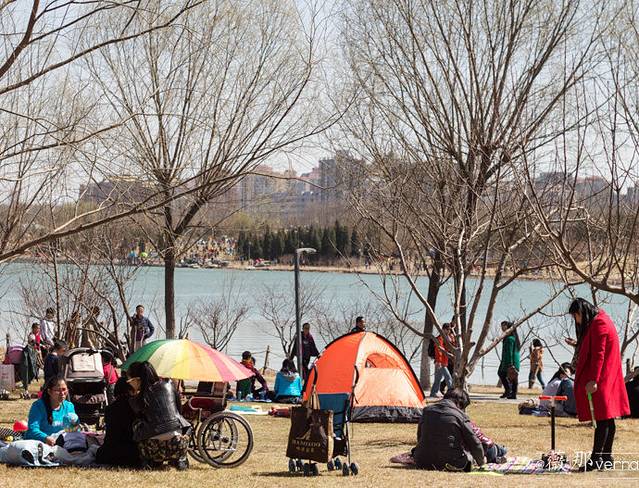 连日来京城的好天气 ,吸引了众多市民周末踏青,带着家人、孩子,拿着帐篷,在湖边晒太阳。