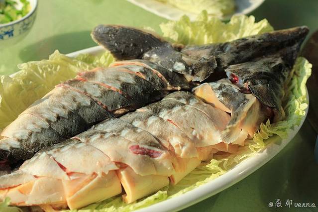 水库里养殖的鲟鱼,肉很嫩,鱼刺少