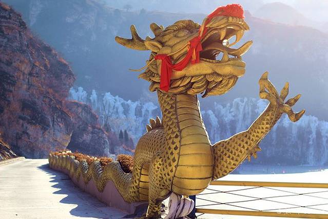 往里走的马路边是一条长达361米的龙,晚上在灯光下更漂亮