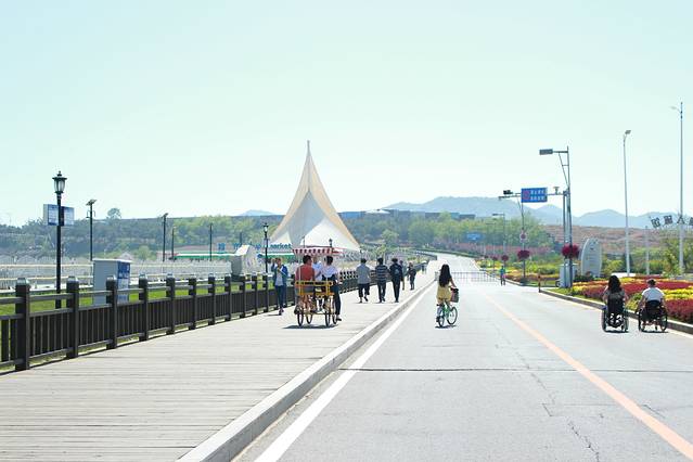 滨海路。前面山下的石头墙里面是一段超级陡峭的公路,上去这个陡坡便是国家会议中心。