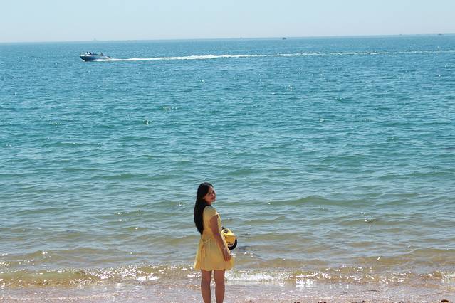 再往前走不远就是海边,蓝蓝的海水一点一点暴露在眼前,真个人都爽朗了起来。这个时间,来海边旅行的人还比较少,水还比较凉,但还是忍不住脱下鞋子让脚丫爽了一把 。细砂很少,白嫩的妹纸还是不要尝试赤脚在沙滩散步了。