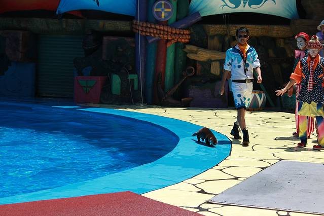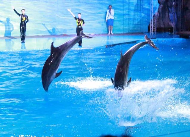 我和小伙伴都是懒人,喜欢睡到自然醒,旅行也不例外。所以睡到自然醒吃完早餐出门,到老虎滩就已经12点了要,从网上350元买了两张票,便跑进去开始HIGH了。老虎滩很大很大,从12点逛到4点也不过就逛了一半多一些吧。很幸运的是赶上了海狮海豹表演和海豚表演,最大感慨便是——驯兽师好帅!可以约么?海洋极地馆很大,动物也是比较全的,感觉棒棒哒。特别建议大家去珊瑚馆参观,去观察一下那些极小极脆弱却无比五彩斑斓的生命,有很多你完全相像不到的生命都美到极致。