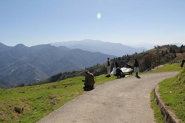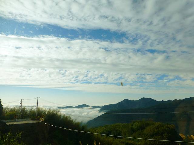 上山风景还不错,但也就是一般高山的景色,在大陆看的也差不多。这天阳光很灿烂,没怎么起雾,远处还看到了一点点云海。