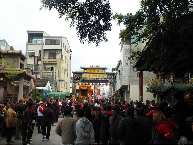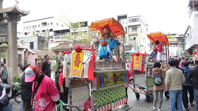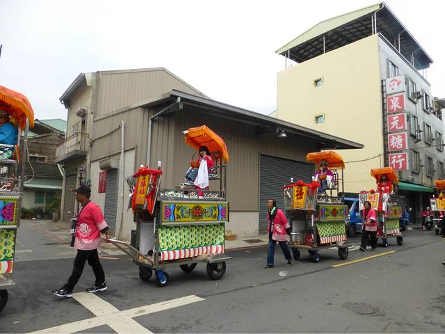 准备中午离开台南去嘉义,这时民权路附近有了庙会活动的游行,非常热闹,坐在花车上的小孩还会发糖。