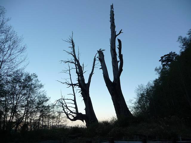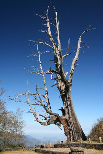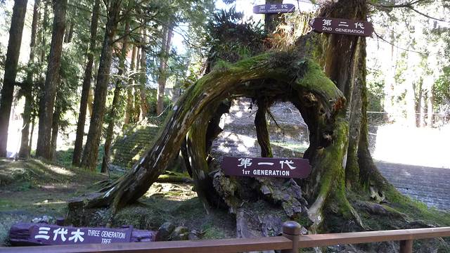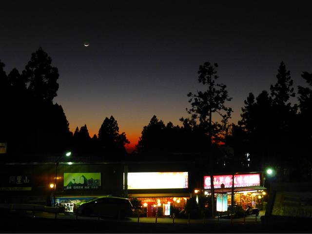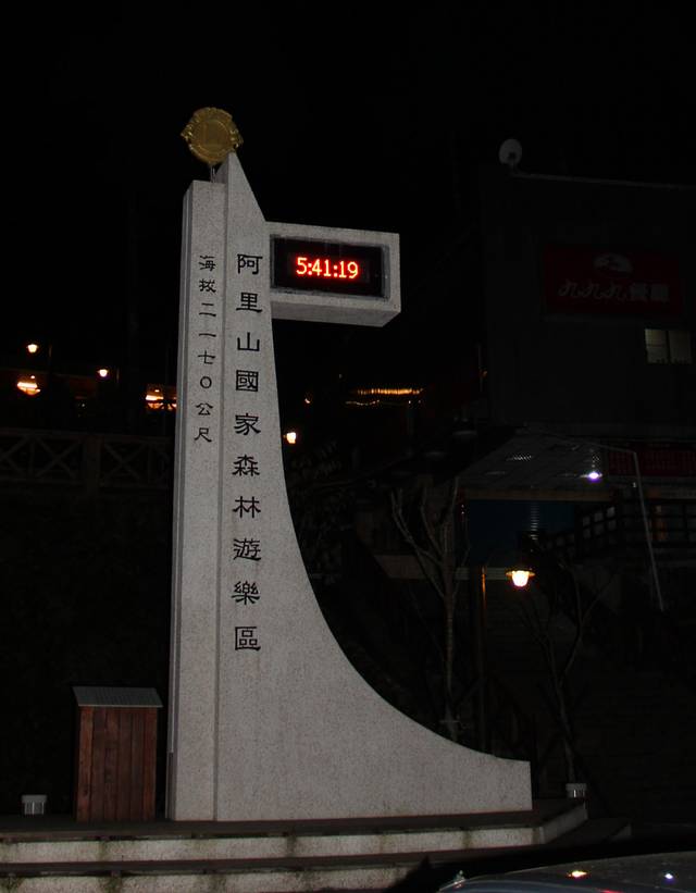 收拾完毕后大约四点,我们进到阿里山森林游乐区散步,大概由于天色较晚了,传说中陆客最多之一的阿里山森林公园里都没见多少游客,我们走到了三代木处天色就接近全黑了。