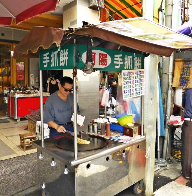 插播一件没什么大意义的小见闻……在大陆我们常常能看到“台湾手抓饼”,我从中学起就挺喜欢的啦,但在台湾基本从没见过“手抓饼”这个说法,一般相同的东东都叫做“葱抓饼”,口感差不多,也有加各种奇葩的填料,唯有在台南见到了!!但也和大陆的长得不一样哈