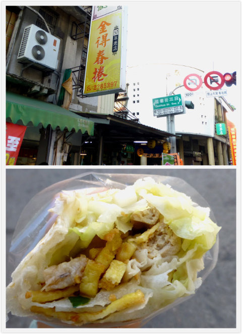 其中金得春卷、富盛号碗粿、阿松割包号称国华街早餐金三角。个人比较喜欢金得春卷,里面貌似包着蚕豆、蛋丝、豆干、高丽菜、花生粉等等等好多东东,可以要半糖或无糖,否则会偏甜。