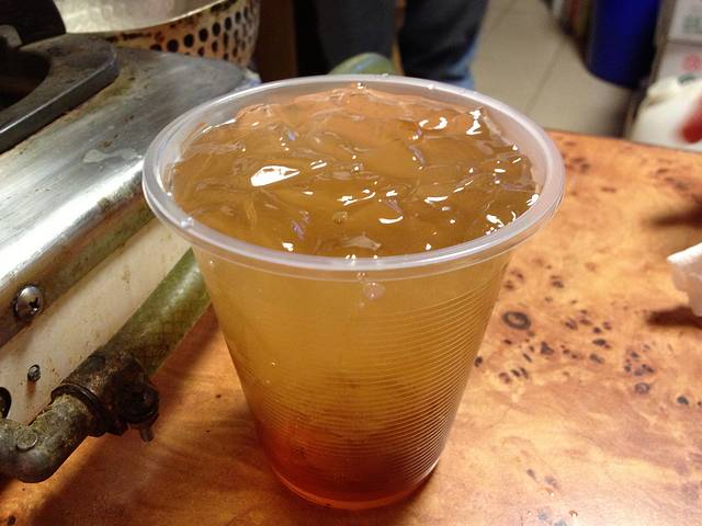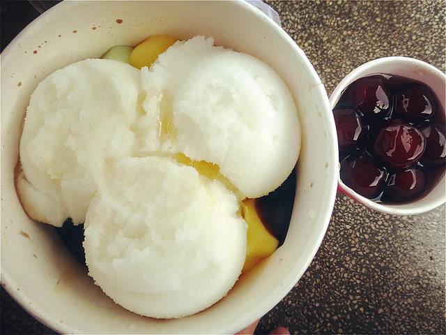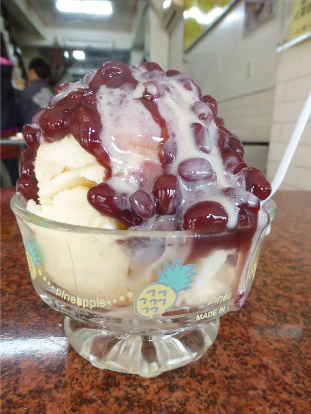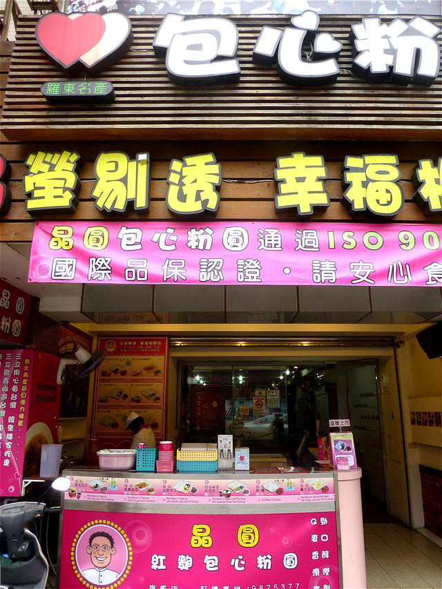 这个是罗东的特色,包心粉圆~~右边是热的包心粉圆,就是粉圆(不知道和珍珠是啥区别)里含红豆。还可以要一份各种布丁啊仙草啊什么的冰,或者红豆桂圆那种热汤,总之冷热要混着吃,我很喜欢~~