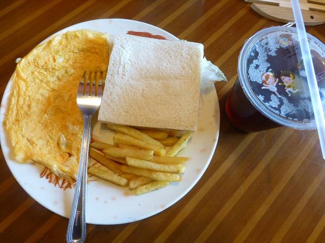 一早起床,凯伦大哥做的早饭~(我怀疑这薯条是微波炉做的- -)
