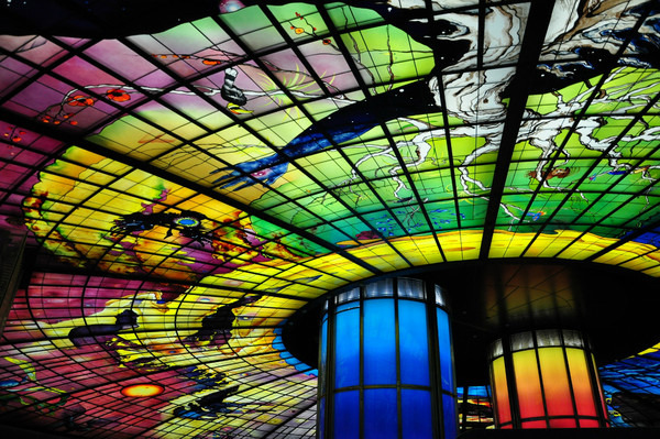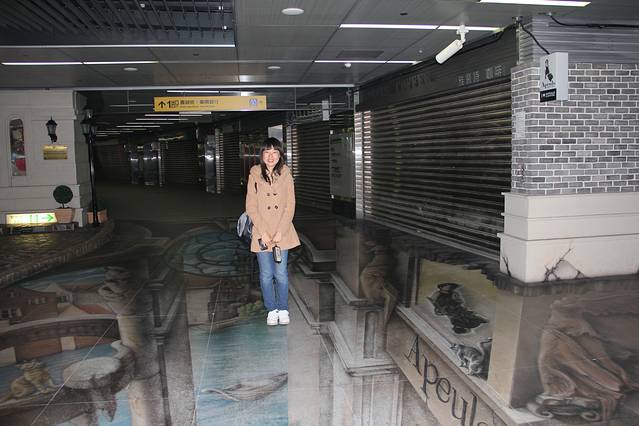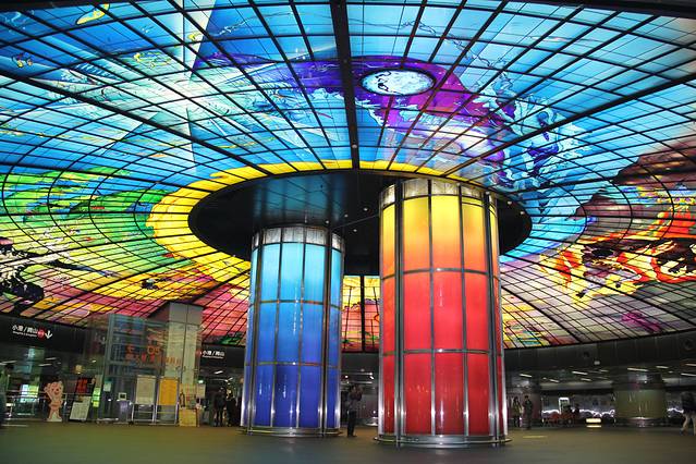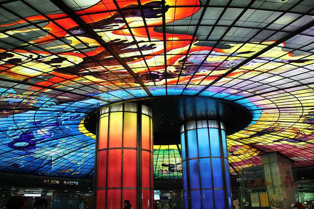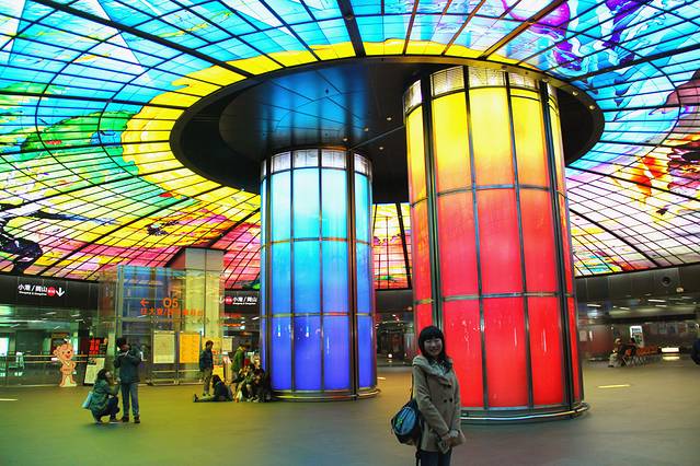 旁边就是著名的最美地铁站之二的美丽岛捷运站,我们下去了,还没到穹顶,觉得这儿就很特别~