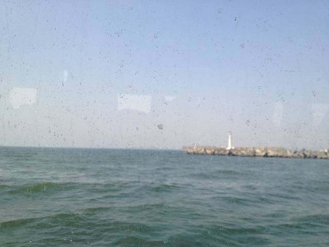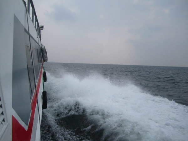 这里是出海口,有巨大的水泥石墩以及深坑,风车是标志性景点。出海口是由于温度不同形成的两种颜色的海,风超级大!手机差点吹走了。