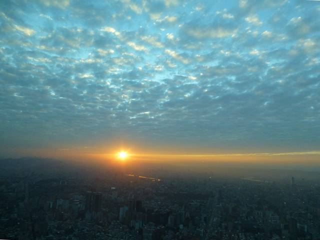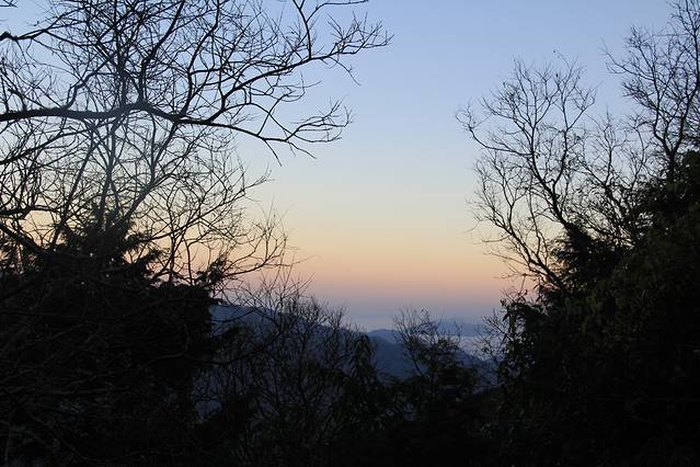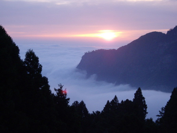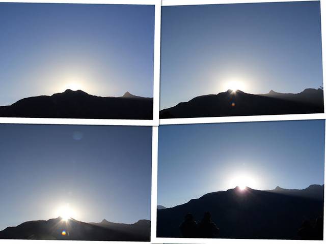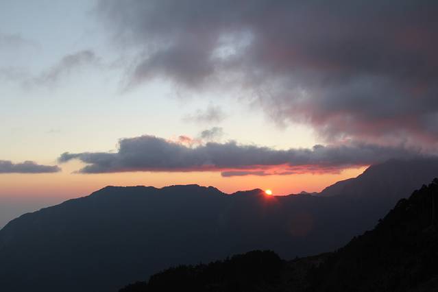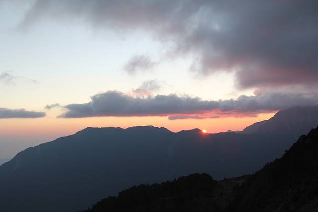 日出总是那么突然,现在6:25左右,它就这么从一个你没盯着的地方冒出来了,本来云层很厚还担心看不到了呢,觉得很神奇,忽然就冲破云层出来了。和玉山很不同,三天内看了两场日出风格迥异,觉得很值。
