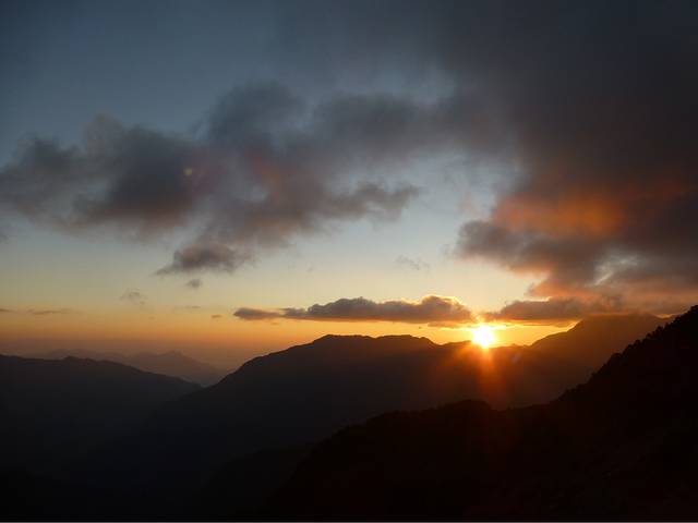 终于日出了!虽然盯着那个山尖足足五分钟,周围已经一片大亮了,还是觉得太阳出来的那么突然,那么难以想象= =太阳出来的瞬间仿佛山上就暖和了许多,要知道玉山可是全台湾最冷也是仅有的三处会下雪的地方之一呢。这是我平生第二次看日出吧,觉得玉山真美。