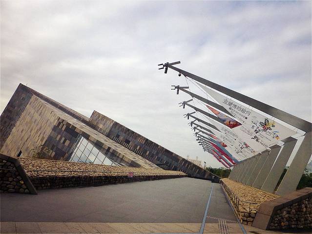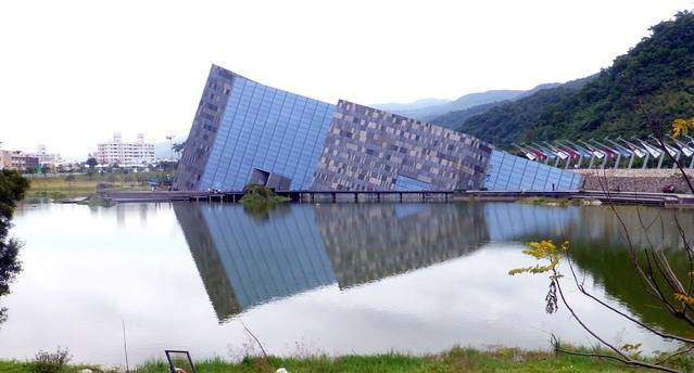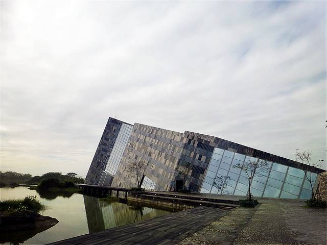 兰阳博物馆是一个介绍宜兰的自然史博物馆。旁边就是历史中兴盛、现已为湿地的乌石港,很喜欢它层层叠叠的设计,仿佛宜兰当地史诗般的壮阔地景,背山面海,前迎龟山岛,在山、平原、海、与岛等自然地景之间建立出自然与人文交错的特殊空间意涵。