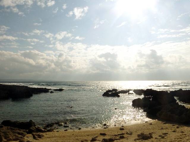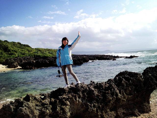 今天阳光特别灿烂~其实爬上礁石不容易,风很大万一吹下来可是很痛的>.<