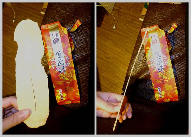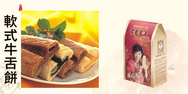 这就是著名的宜兰饼,牛舌饼,据说是世界上最薄的饼,可透光,只有0.1公分,香脆可口的很呢,有枫糖、咖啡、乳酪、鲜奶、三星葱、竹炭芝麻、海苔、香椿、椰香九种口味~