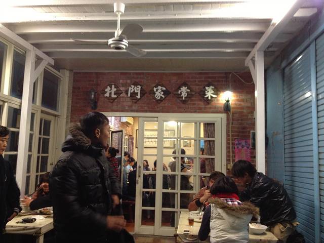 这是他推荐的小饭馆,北门家常菜。里面爆满聚餐的好大一桌,冷的瑟瑟发抖的我们只好坐在外面吃了,确实相当不错。