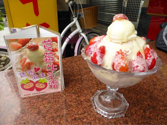 接近台南车站的太阳号冰城我很喜欢,红豆牛奶霜只要45nt一大杯,很美味,超级甜。160nt的芒果/草莓牛奶霜上次去的时候还送一个小份的奇异果口味,既然和老妈在一起当然就享受一下平时舍不得吃的啦。