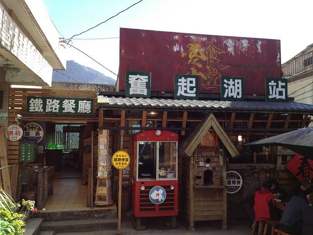 奋起湖街道特别短,走过后上了一溜台阶到了车站,这里的铁路餐厅也有卖便当的,口味价格都是差不多的吧。(台湾有一点非常好的地方就是,相似的食物用品在景点与非景点处价格差距不会太大的,大城市物价比乡镇略高一点,离岛的便利店物价高一成,仅此而已)