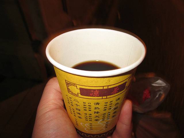 像是这样的凉茶铺,广州街头应该有很多家的,我是某个晚上,从恩宁路出来在某个转弯角看见了一家,就买了杯喝,也不贵,一般都是2~3元/杯,但是我不得不说,这凉茶是真心苦啊,喝了一口我就苦的不行了,但是我记得我最后还是把它喝完了,真不知道我是怎么做到的。