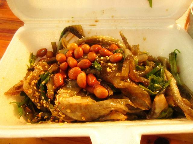 说实话,我从小就不太爱吃鱼皮,可是之前做攻略的时候看到很多人推荐,本着出来玩就要敢尝试的态度,点了一份爽鱼皮,真的不错,很脆也没有鱼腥味,十分爽口,就是价格有点小贵。