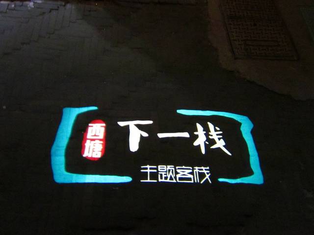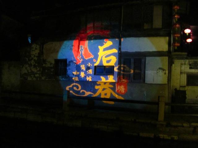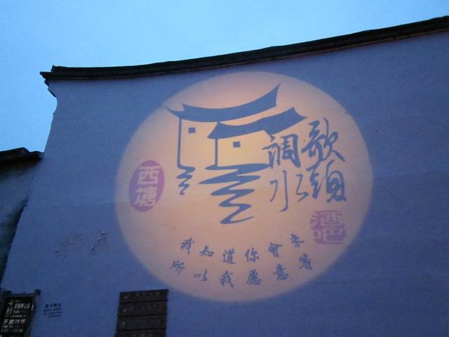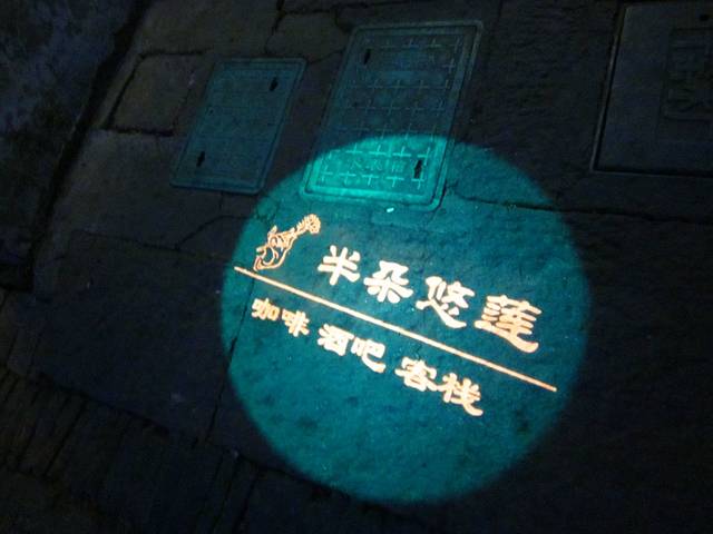 夜幕慢慢降临后,各家的投影亮起来了,酒吧一条街也开始躁动了起来。