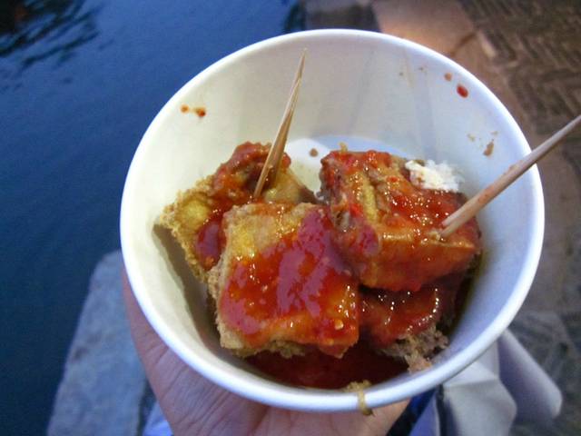逛着逛着就饿, 买碗臭豆腐(3元)吃~西塘这边的臭豆腐和长江那边的还是不太一样的~