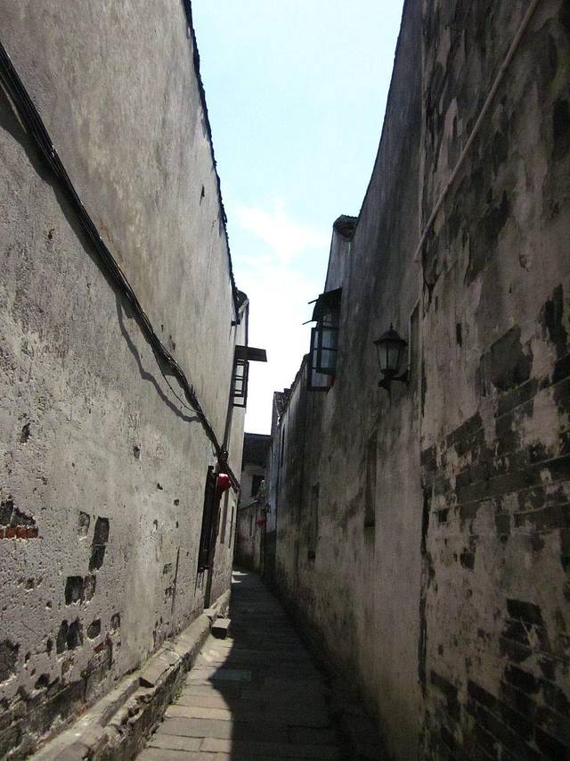 石皮弄,全长68米,最窄处仅0.8米,这应该是西塘里最窄的一条巷子了。