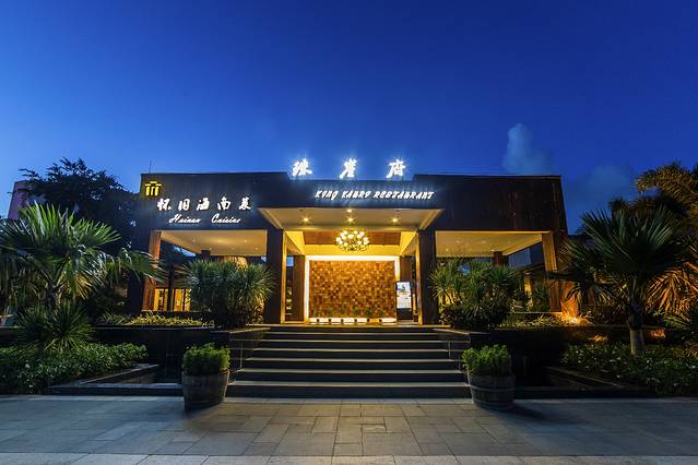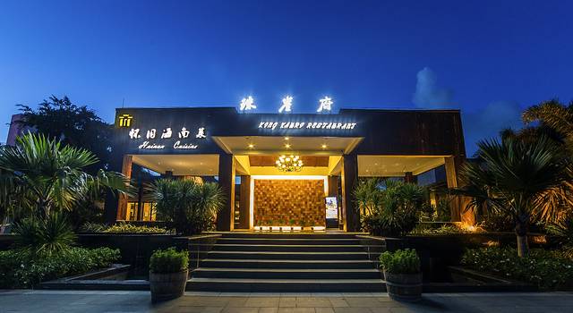 说到当地美食,印象比较深的是一家名叫珠崖府的餐厅。环境清幽舒适,设施高雅简洁。餐厅门口有一块巨大的柯瑞木,据说是起源于侏罗纪时代,曾在地底下埋藏了四万到五万年,至今没有石化和腐烂,可谓是神木。