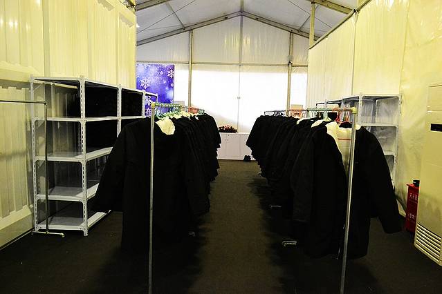 冰雕园里的温度低于零下8度,因此,进入园区,需要装上冰雕园为大家准备的棉服和棉靴。当然,还有专门为小朋友准备的小号装备喔。