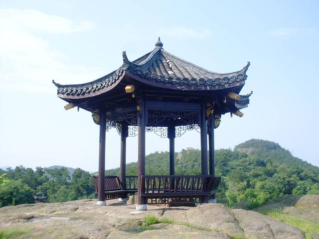 浮山海拔不高,因为石头多,起伏落差大,加之毒日当头,所以一路汗水不绝。在浮山镇买的黄瓜和水,不到中午就吃完喝光。最有印象的是滴水洞,颇惊奇。其它如摩崖石刻之类,在通天岩已经饱览一遍。通天岩不但有石刻,还有造像,门票只收50,浮山却要收120。下山后,看到景区大门外一大片精致而冷落的仿古建筑,就明白为什么把票价定这么高了。盲目投资的恶性循环,本来人就不多,还投资搞这么多建筑,很明显是打肿脸充胖子。在景区大门对面还有一座未完工的大型建筑,据说预备建五星级酒店,估计因为游客稀少而成了烂尾楼。门票一贵,游客更少了。论自然景观,大大不及潜山的天柱山,浮山低矮,虽有奇石,多埋没在杂木间。我主要是对它的火山地貌感兴趣,只是囿于自己地质知识有限,不得其门。火山岩洞是浮山的一大亮点,除了滴水洞,还有紫霞关、仙人桥有些奇特。