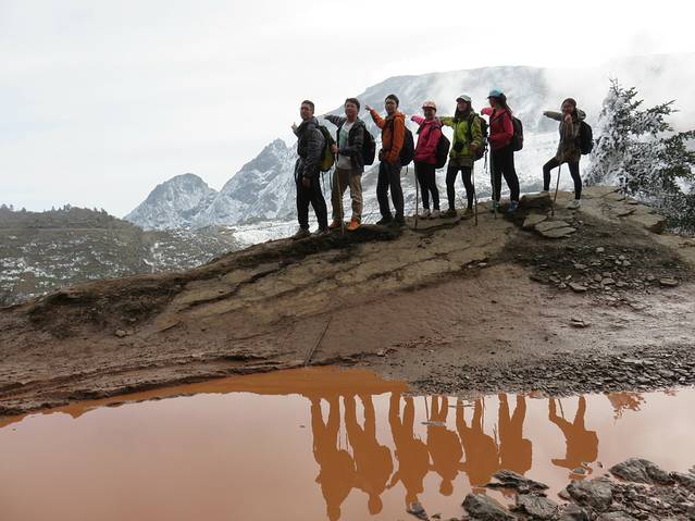 前面都是队友们我们葫芦七娃的成员们,感觉像是在画中行走一样。图中之字形的才是大路,我们是抄的小道下来的。