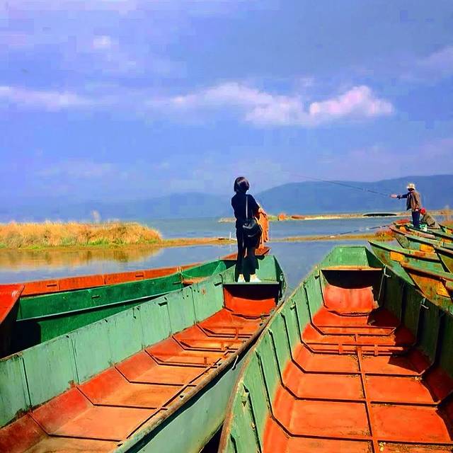 平时每天都要懒床,但是来到这里我还特意的定了闹钟要看日出,后来发现根本不需要闹钟。看着波澜不惊的水面,偶尔会有一只小船,海鸥自由的飞来飞去,而我就静静的放空甚至觉得自己最喜欢的音乐在那个环境下都是多余的。呆到中午我们去楼下租了电摩托,环湖骑去大理古城吃香喝辣。(美食我会在最后总结一起发)