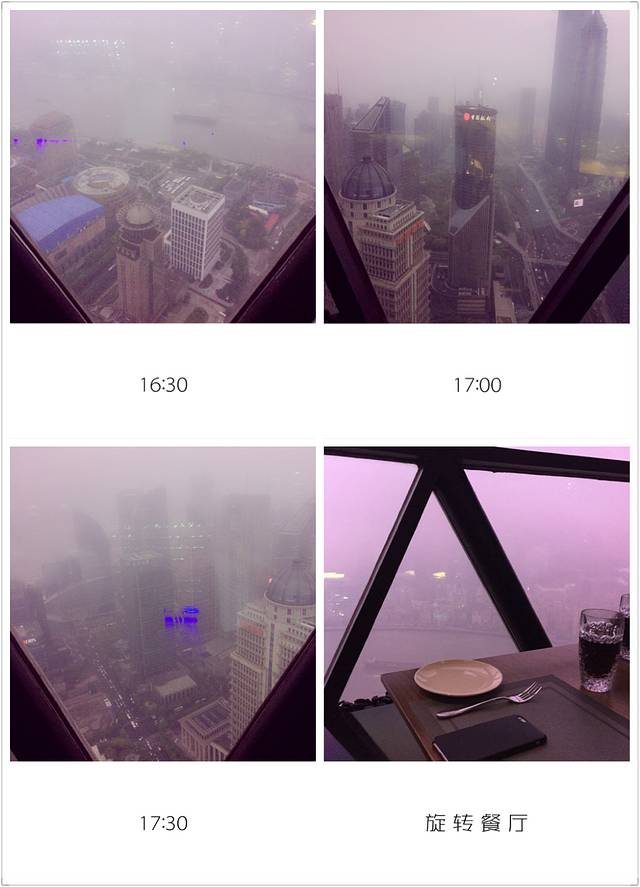 环境确实不错 就是上海的霾太严重了 能见度比较低 不然的话在餐厅看外滩陆家嘴那些的夜景也确实是不错 到了晚上餐厅会比较黑 最好早点去
