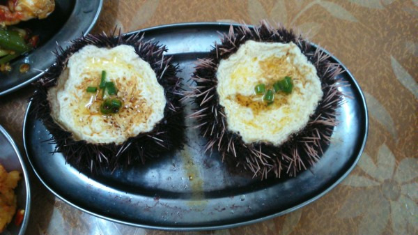 这边的大龙虾是100元/只,鲍鱼4元/个(这个是加工店阿姨带我们外面买的,帮我们砍价,市场里面要6元/只),海胆10元/只,螃蟹25元/斤(我们买的是三角蟹,一斤大概4、5只),于是我们买海鲜花费200元左右。