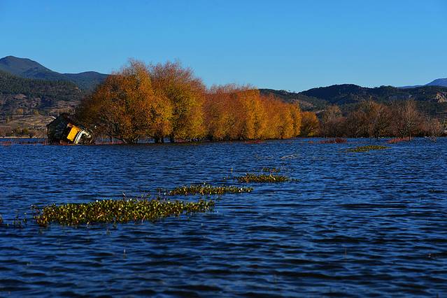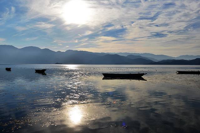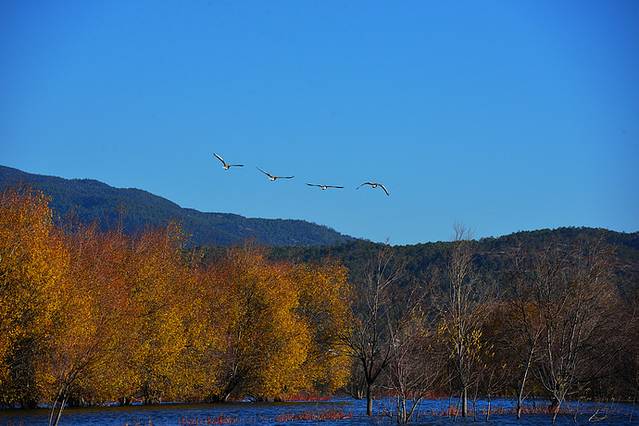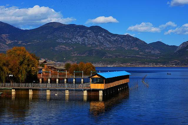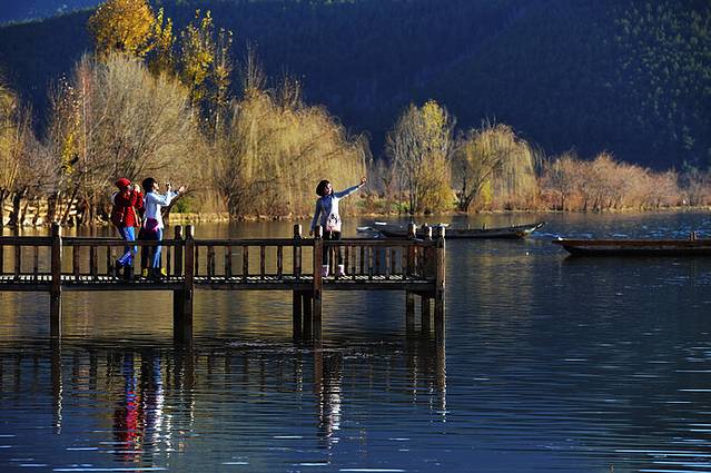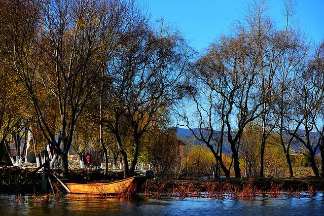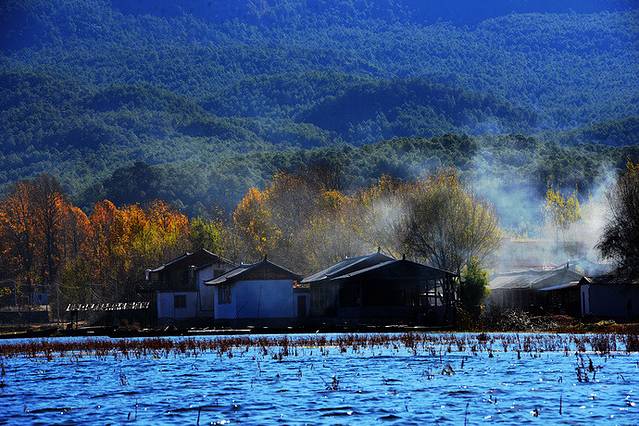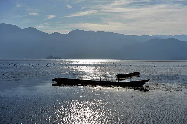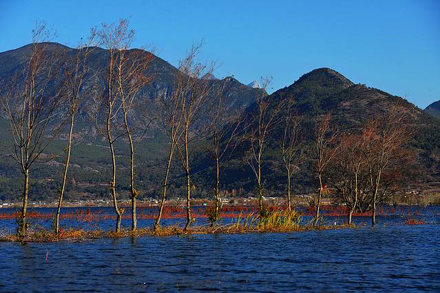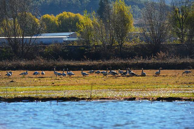 从丽江到大理出来不远处就是拉市海湿地,湿地的湖水因雪山融化而来所以很凉,湿地里水净草丰、小鱼小虾繁多,这里是保护区有着安全的自然环境,是吸引候鸟们南迁越冬的最佳栖息地。湿地里有几十种鸟类并每年吸引着数万只候鸟来此过冬。拉市海湿地山清水美,湖水清澈见底,是我国难得的自然湿地之一。照片拍摄于2013年12月11日云南丽江拉市海