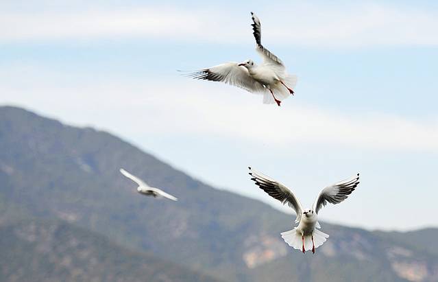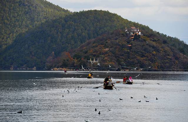 泸沽湖是候鸟的天堂,每年冬天都会吸引大批的水鸟在这里过冬,大雁、野鸭很多叫不上名字的鸟类成群漂游在湖面。最容易拍到的当属海鸥了,每天都有大批游客在这里喂食,海鸥们也不惧怕人类,或跟随着游船四周飞舞,或俯冲到水面抢夺食物,一派欢畅多姿的景象。照片拍摄于2013年12月9日~10日泸沽湖